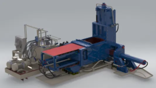 Heavy scrap shears with side compactor and column guiding for reliable and high productive scrap processing.